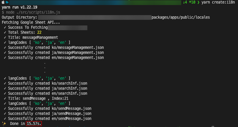 Sheet Row 400개에 2초, 전체 Row는 약 15초 정도로 JSON파일을 생성 할 수 있게 되었다.