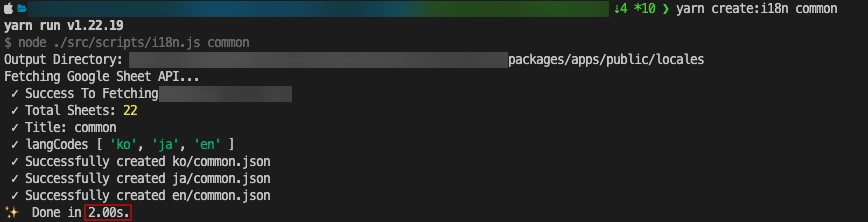 - Google Sheet 데이터를 JSON으로 변환 후 저장아래와 같이 명령어 한 줄로 json파일을 생성할 수 있게 되었다.